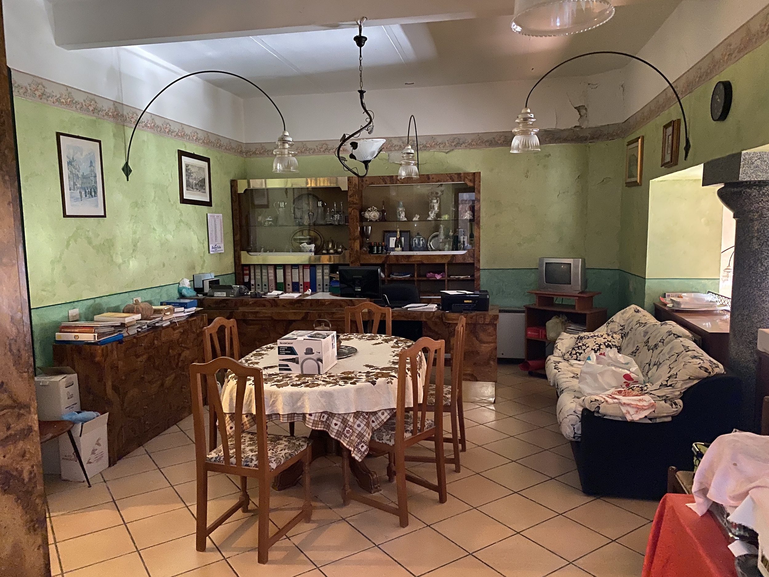 VILLA UNTERGESCHOSS: Eingangsdiele, Vorratskammer, Wäscheraum, Küchen, Eingang des Hotels. 2 Bäder,