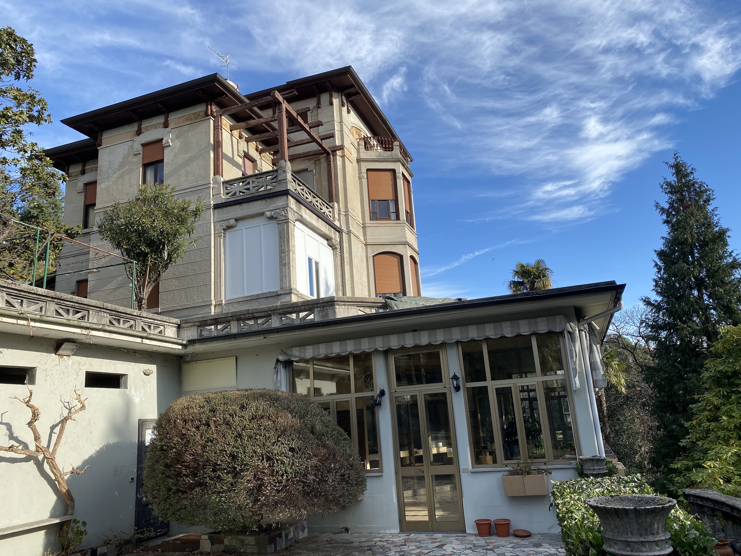 Herrschaftliche Villa mit Dependance, umgeben von einem Park von 3.200 m2 mit jahrhundertealtem Baumbestand. Dank einiger Renovierungsarbeiten befindet sich die Villa in einem guten Erhaltungszustand mit den charakteristischen Original Markmalen des Liberty Stils und wurde bis vor kurzer Zeit als Bed & Breakfast genutzt.