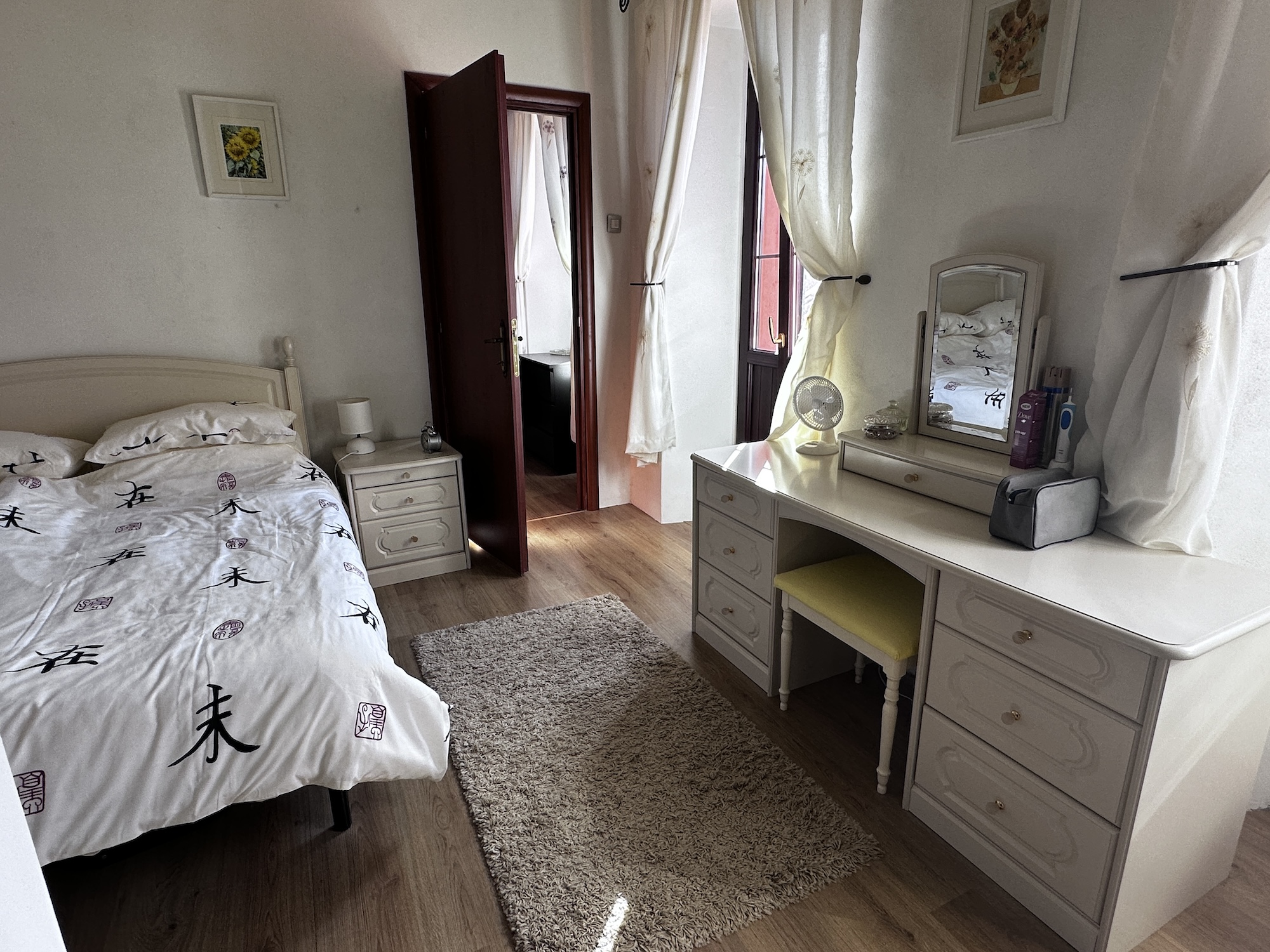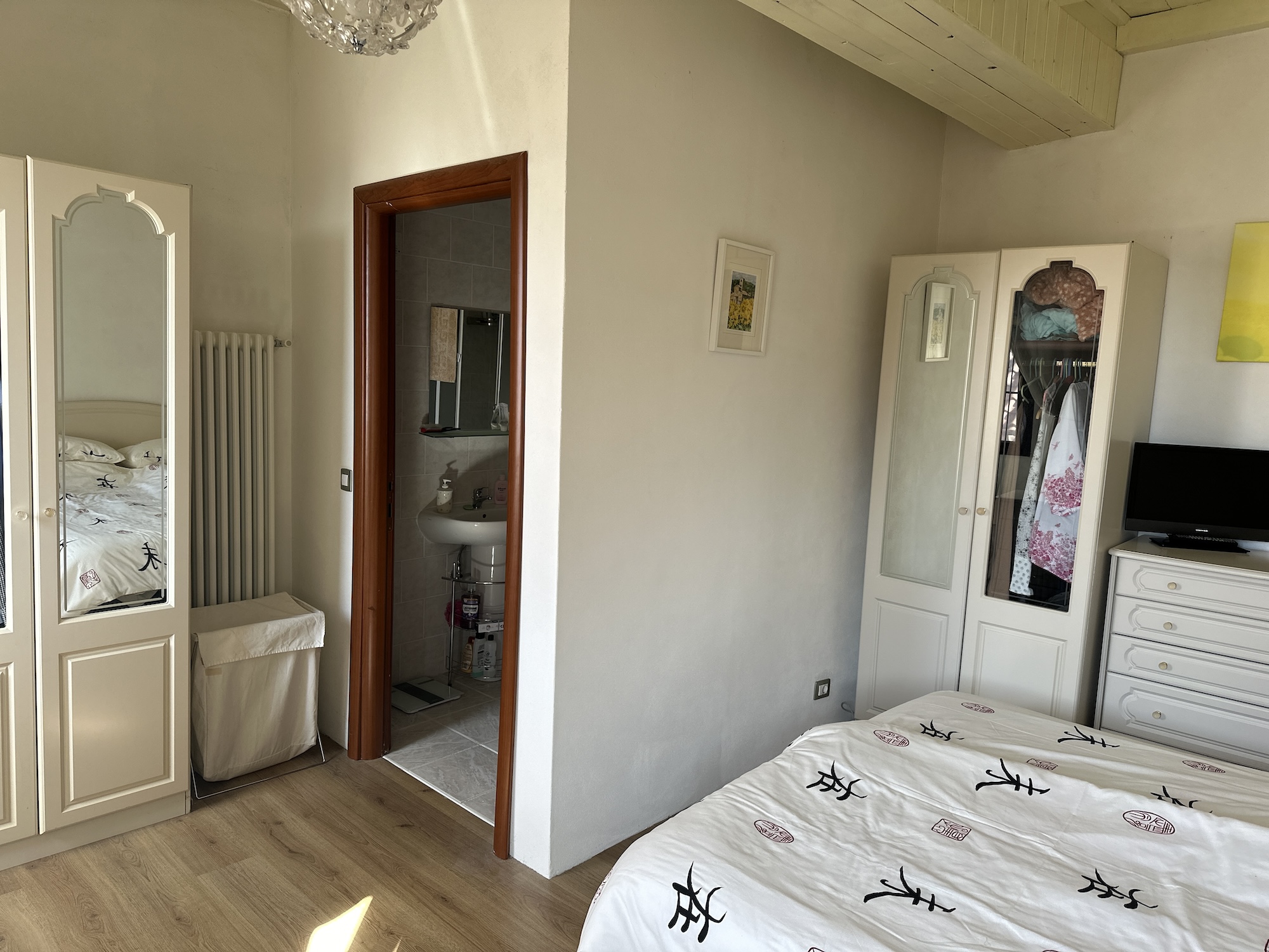 OBERGESCHOSS: Zwei Schlafzimmer mit jeweils eigenem Bad (en suite), vollständig ausgestattet mit Betten und Kleiderschränken und Ausgang zum Balkon.