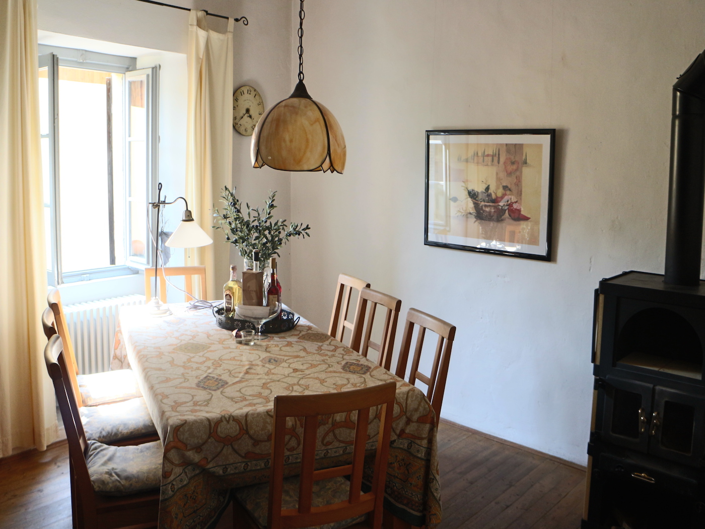 PIANO RIALZATO: ingresso, cucina con stufa a legna, soggiorno con camino, zona pranzo con stufa;